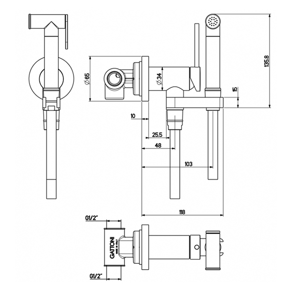 Гигиенический душ со смесителем встраиваемый GATTONI RT010C0
