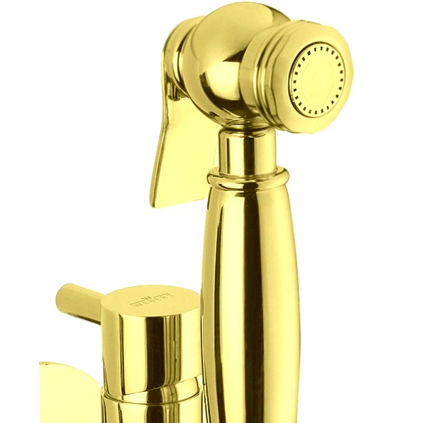 Гигиенический душ встраиваемый со смесителем WEBERT Elio золото в комплекте с ответной частью, Гигиеническим душем из ЛАТУНИ и гибким шлангом из латуни 150 см