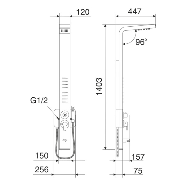Душевая панель с гидромассажем AVEK Regen 1403x120x447 мм, смесителем с 5-ти позиционным переключением режимов работы, верхний душ, каскадный душ, излив, ручной душ с гибким шлангом