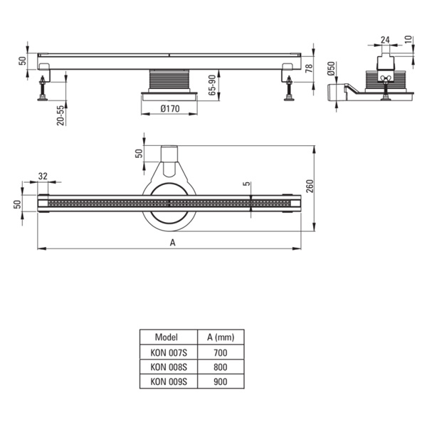 Дренажный канал DEANTE 700x50 мм KON 007S: