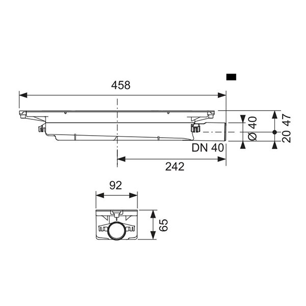 • Минимальная монтажная высота 65 мм (от нижней кромки сифона до верхней поверхности бетонной стяжки)