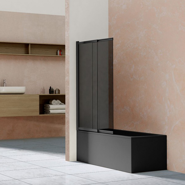 Душевая шторка на ванну VINCEA 1000х1450 профиль черный матовый, стекло тонированное 5 мм VSB-1E100CGB
