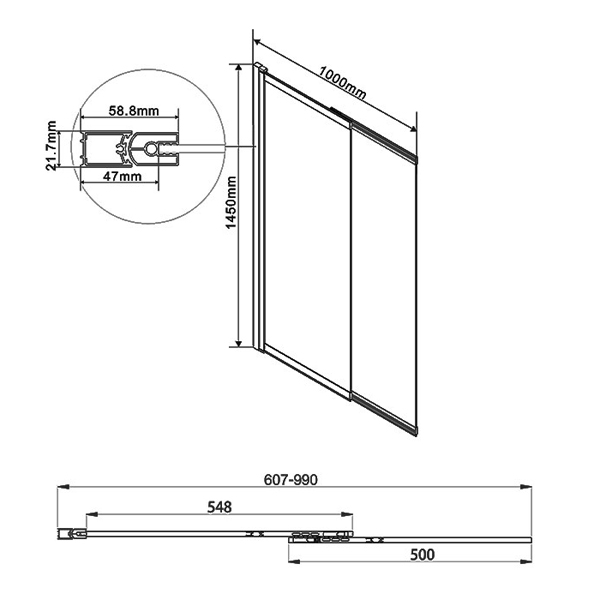 Душевая шторка на ванну VINCEA 1000х1450 мм VSB-1E100CGB: