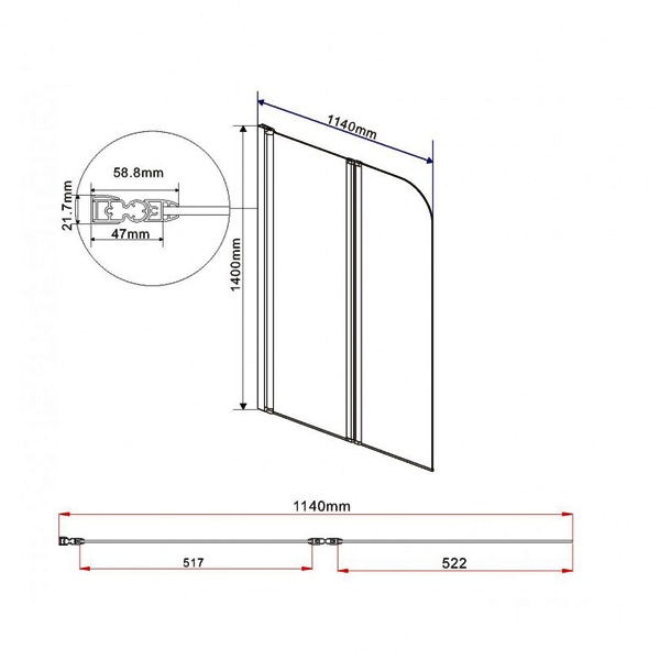 Душевая шторка на ванну VINCEA 1140х1400 мм VSB-12114CLB: