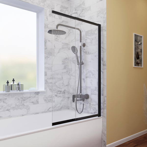 Душевая шторка на ванну раздвижная WASSERKRAFT Dill 61 1000х1400 мм профиль черный, стекло прозрачное 6 мм. с грязеотталкивающим покрытием 61S02-100 Wassershutz