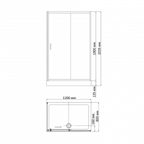 Душевое ограждение с поддоном BANDHOURS Chrome 800х1200х2035 мм профиль хром, стекло прозрачное 5 мм