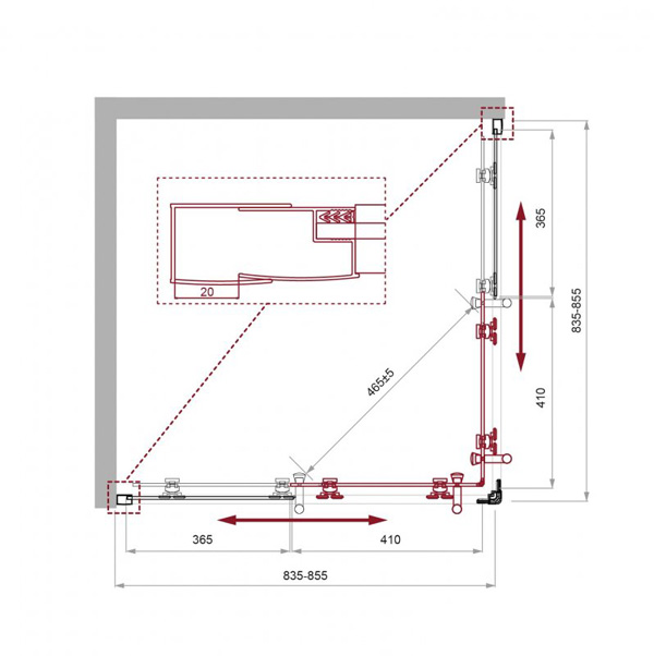 Регулировка ширины: предусмотрена за счет боковых профилей