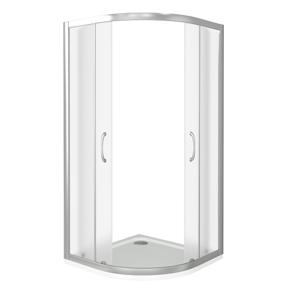 Душевое ограждение GOOD DOOR Latte 900x900x1850 мм закругленное с двумя раздвижными дверями, профиль белый, стекло grape 5 мм.