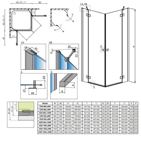 RADAWAY Essenza New Black KDD 900x900x2000 3850605401L3850605401R:
