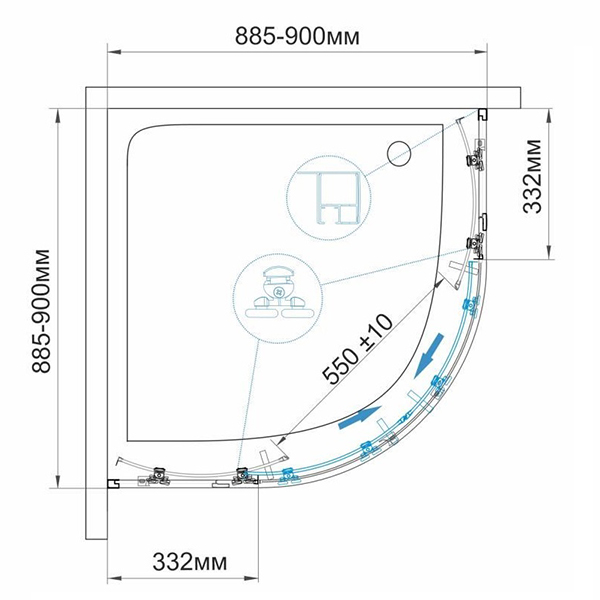 Размеры с диапазоном регулировок: (885-900)х(885-900)