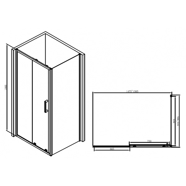 Душевой уголок ABBER Schwarzer Diamant 1500x1000x1900 мм с одной раздвижной дверью, профиль черный, стекло прозрачное 6 мм. AG30150B5-S100B5