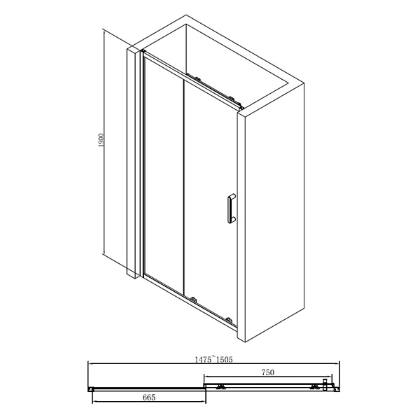 Дверь в душевую нишу ABBER Schwarzer Diamant 1500x1900 мм с раздвижной дверью, профиль черный, стекло прозрачное 6 мм. AG30150B5