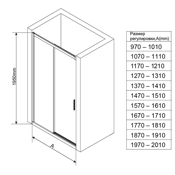 Размеры с диапазоном регулировок: 1170 – 1210 мм