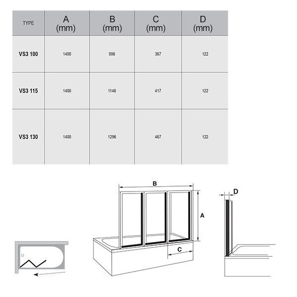 Шторка для ванной RAVAK VS3 1000x1400 мм 795P0U00Z1