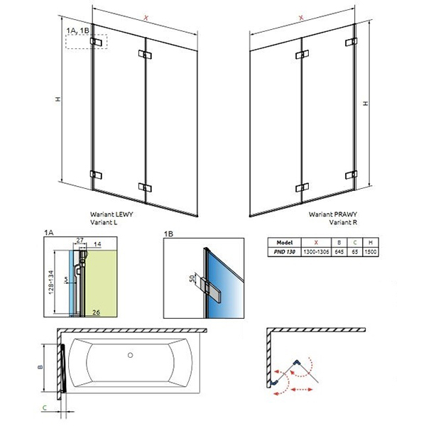 RADAWAY Arta PND 130 R 1300x1500 21021301R: