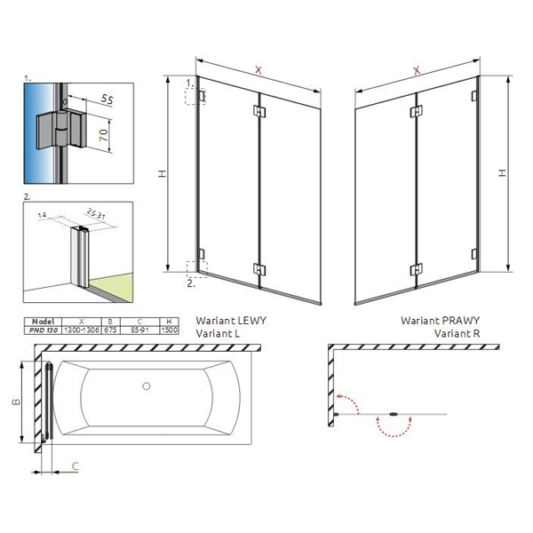 Шторка для ванны RADAWAY Carena PND/L 130 1300x1500 мм 202201-101LДверь душевая в нишу RADAWAY Essenza New Black DWJ 80 Left 800x2000 мм 385012-54-01L