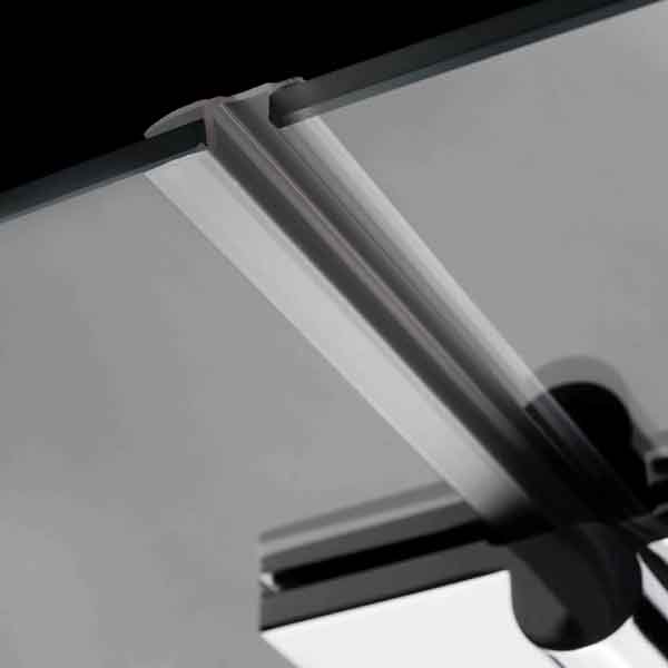 Стекло крепится к стене с помощью пристенных профилей (с регулировкой).
