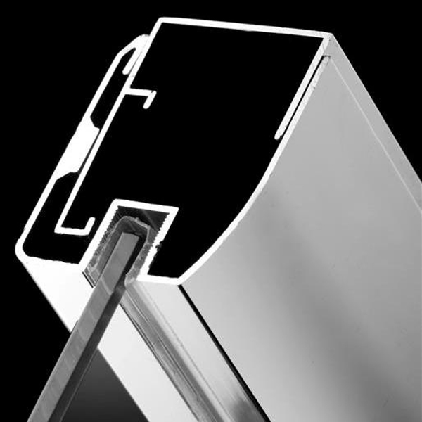 Стекло крепится к стене с помощью пристенных профилей (с регулировкой).