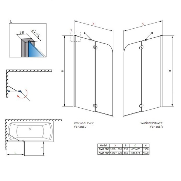 Шторка для ванны RADAWAY Idea Black PNJ Frame 800x1500 мм 10001080-54-56Шторка для ванны RADAWAY Torrenta PND R 120 1210x1500 мм 201203-101NR