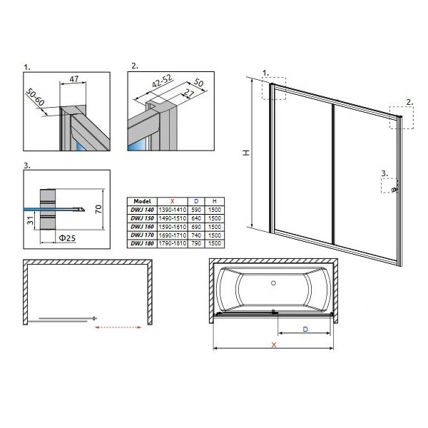Шторка для ванны RADAWAY Vesta DWJ 170 1700x1500 мм 209117-01-01Шторка для ванны RADAWAY Vesta DWD 140 1400x1500 мм 203140-01