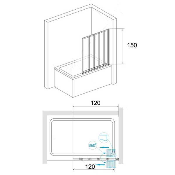 Шторка на ванну RGW Screens SC-22 1200х1500 мм стекло закаленное безопасное 4 мм, профиль анодированный алюминий, створки складываются на 360° 03112212-11