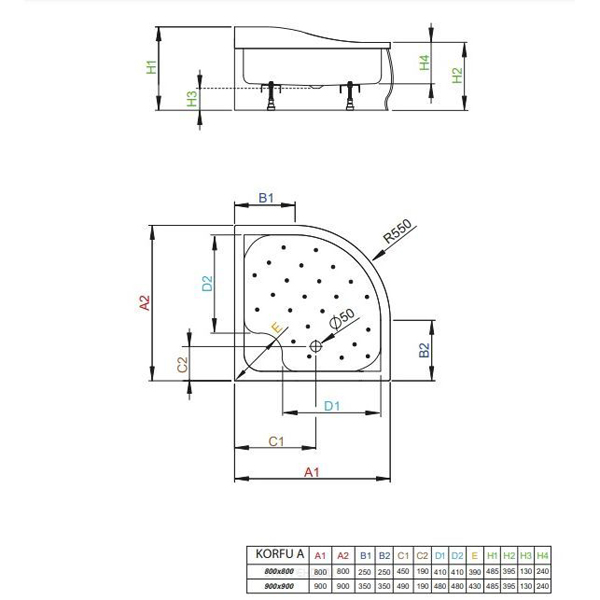 Поддон для душа акриловый RADAWAY Korfu A900 900х900х390 мм 4S99400-03: