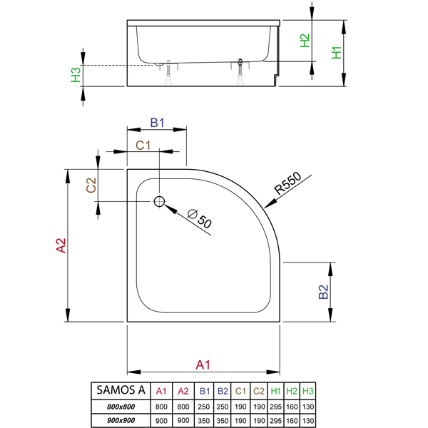 Поддон для душа акриловый высокий RADAWAY Samos A 900х900х295 мм белый 4S99300-03: