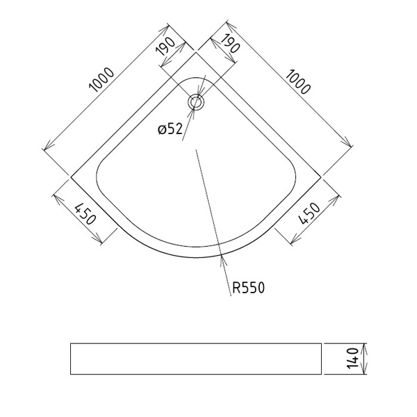 Поддон душевой акриловый закругленный GEMY 1000x1000x140 мм ST08T