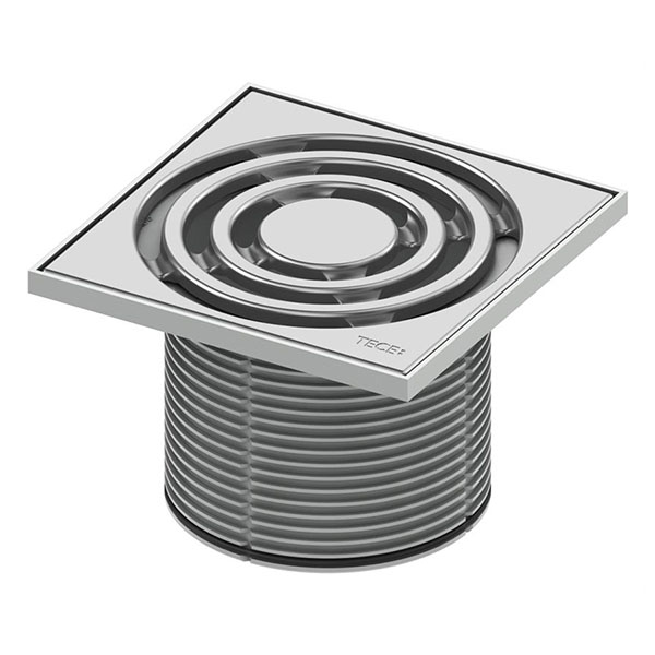 • Декоративная решетка TECEdrainpoint S из тянутой нержавеющей стали, материал 1.4301 (304), размеры 142 x 142 мм, полированная поверхность, класс нагрузки K3 (нагрузка до 300 кг)