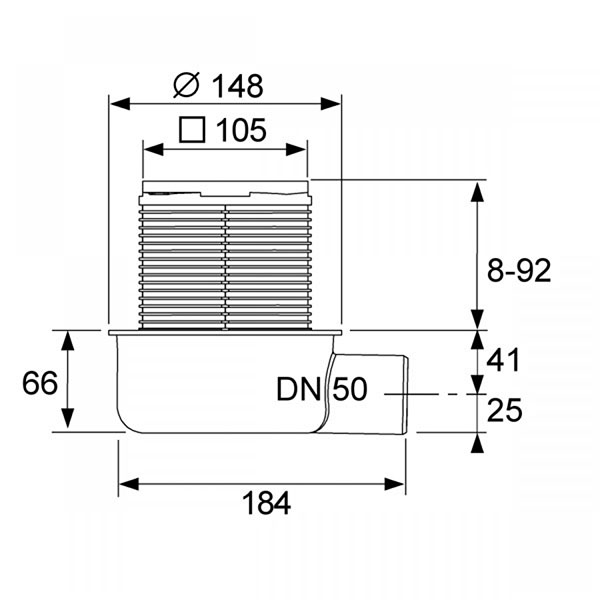 • Верхняя часть с решеткой из пластика (АБС), уплотнительное кольцо