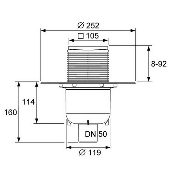 • Уровень гидрозатвора = 50 мм согласно DIN EN 1253