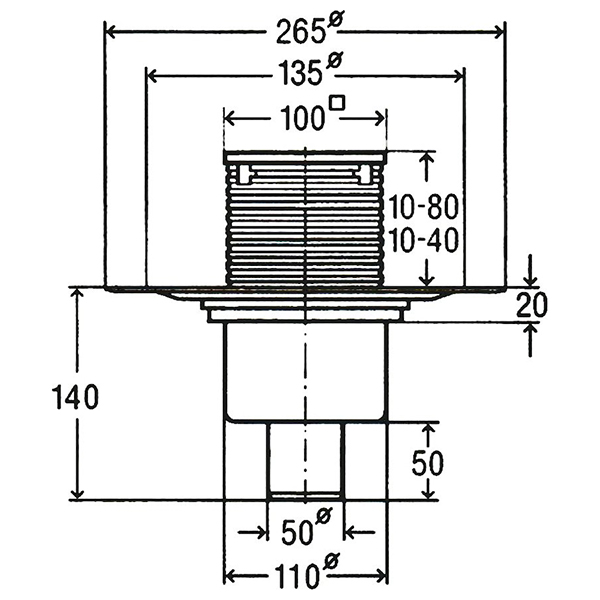с вращающейся и регулируемой по высоте декоративной накладкой 100 x 100 мм