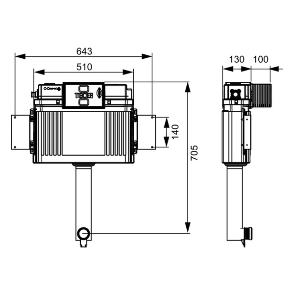 Бачок смывной застенный для приставного униитаза установка в каркасе TECE Profil 9041308