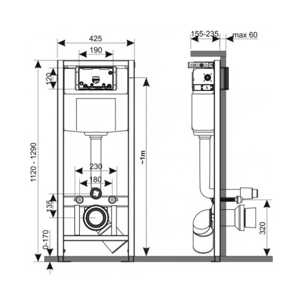Инсталляция для подвесного унитаза KK-POL Standard 1120х425х155 мм 350/ZPW/425-00-S0
