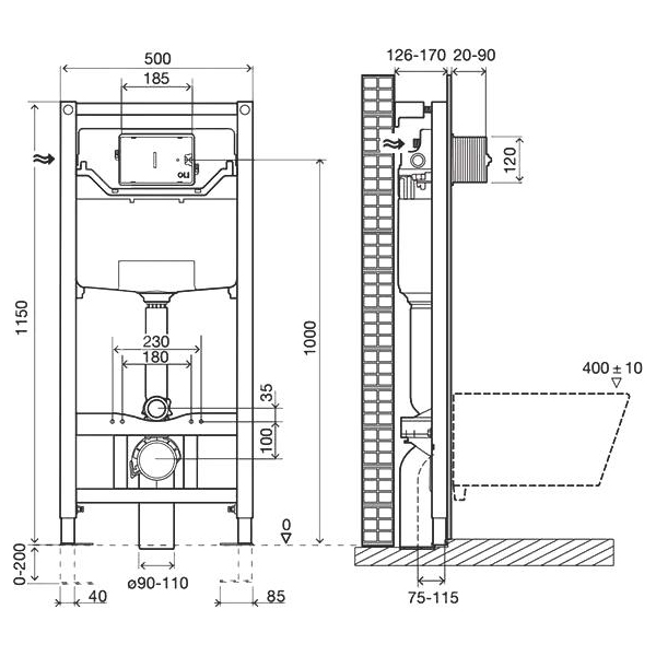 Совместима со всеми видами подвесных унитазов