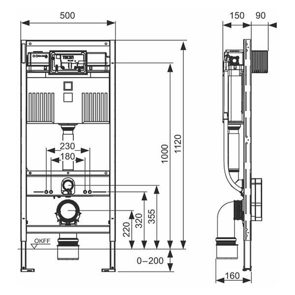 Инсталляция для подвесного унитаза TECEprofil Uni 2.0 9300302