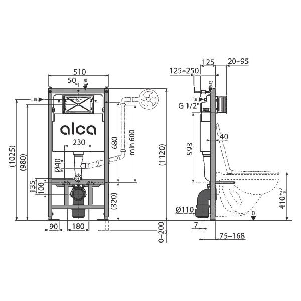 Инсталляция для унитаза ALCAPLAST Sadromodul 510х1120х125 мм с патрубком слива под установку вентиляции AM101/1120
