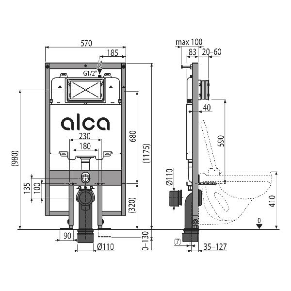 Инсталляция для унитаза ALCAPLAST Sadromodul Slim тонкая 570х1175х84 мм установочная глубина до 100 мм AM1101/1200