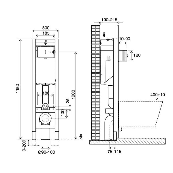 Совместима с моделями подвесных унитазов с расстоянием между креплениями 180 мм