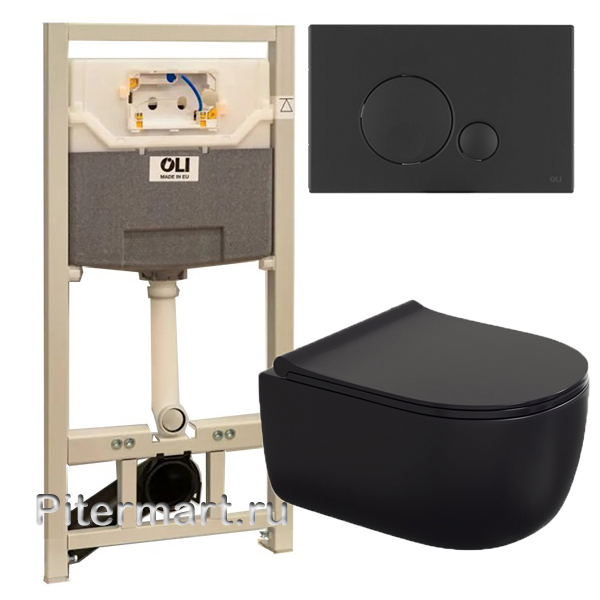 Комплект инсталляция OLI 120 ECO Sanitarblock mechanic клавиша Globe черная матовая с унитазом BERGES Ego Black SoftClose 49 см черный матовый
