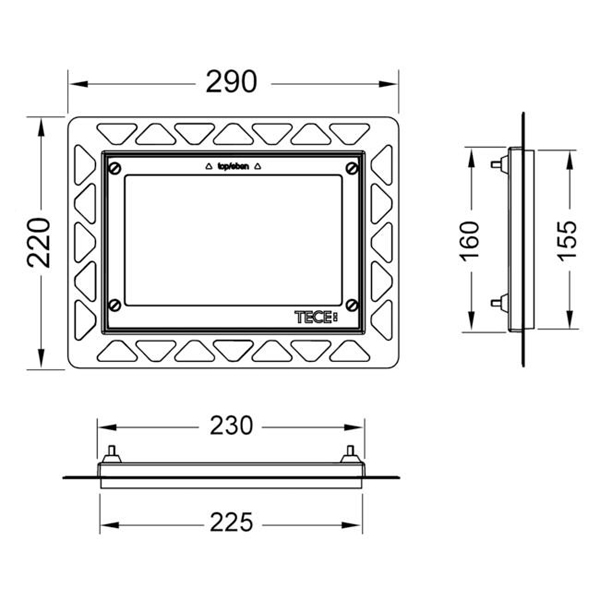 Совместима с модулями для унитазов для сухого монтажа, а также с конструкцией для кирпичных стен вместе с системой защиты застенного пространства TECEbox (арт. 9030029).