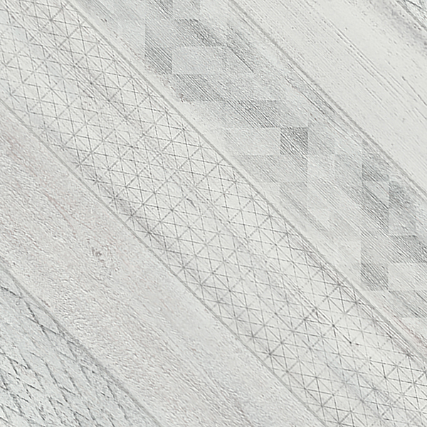 Художественный образ, созданный сочетанием дизайнерского решения древесного рисунка, сквозь который проступает геометрический орнамент, либо рисунок керамических изразцов в средиземноморском стиле.