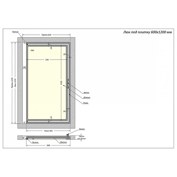 Люк ревизионный SHAGMA под плитку 1200х600 мм: