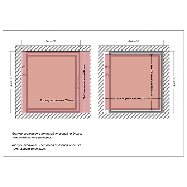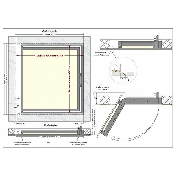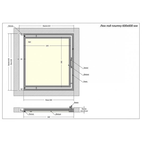 Люк ревизионный SHAGMA под плитку 600х600 мм: