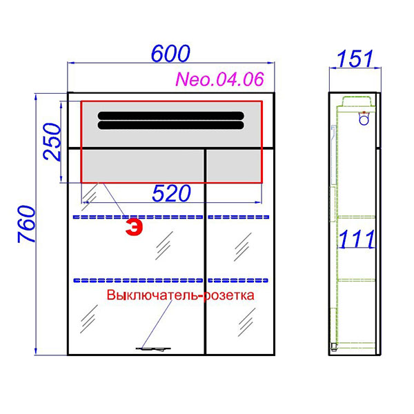 Шкаф-зеркальный с подсветкой AQWELLA Нео 60 600x760x150 мм Neo.04.06