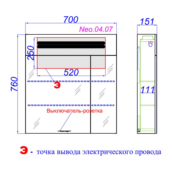 Шкаф-зеркальный с подсветкой AQWELLA Нео 70 700x760x150 мм Neo.04.07: