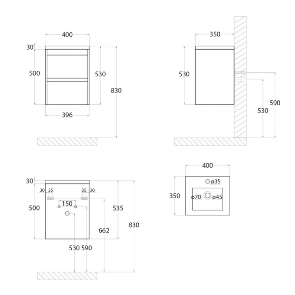 Тумба под раковину ART and MAX Family 400х350х500 мм Cemento Veneto Family-400-2C-SO-CVТумба под раковину ART and MAX Family 400х350х500 мм Pino Esotica Family-400-2C-SO-BL
