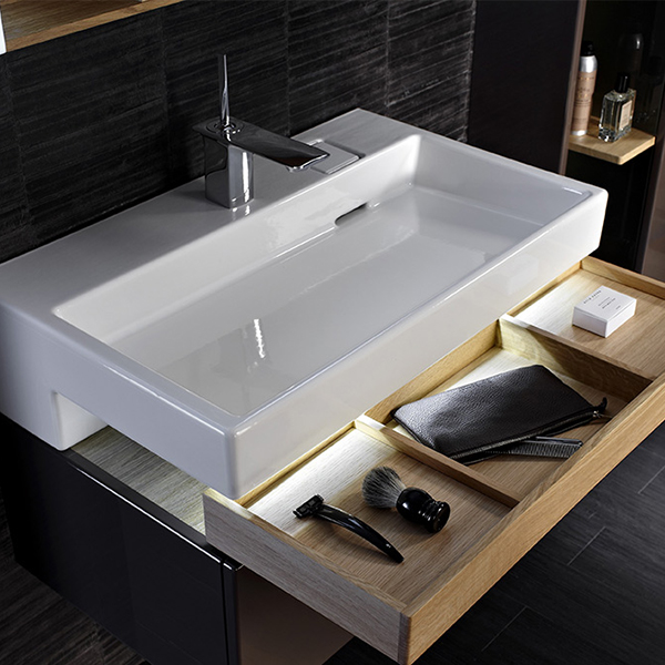 Коллекция Terrace оптимизирует доступное пространство, упрощает хранение туалетных принадлежностей благодаря ящику для аксессуаров и большому выдвижному ящику