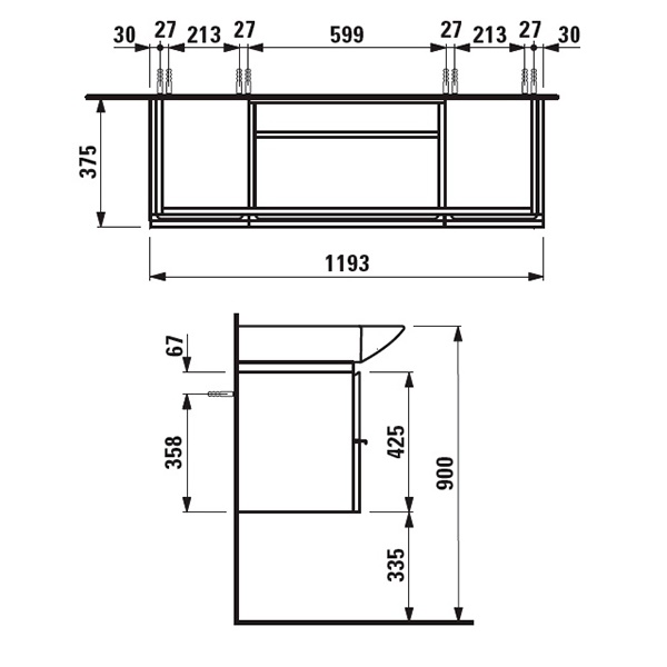 Тумба под раковину LAUFEN Case for Palace 1193х375х462 мм 4.0130.2.075.463.1: