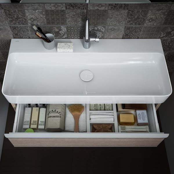 Тумба под раковину LAUFEN Space 935х385х520 мм под раковину 8.1028.7, без сифона, 2 ящика, цвет светлый орех, ручки алюминий светлый 105